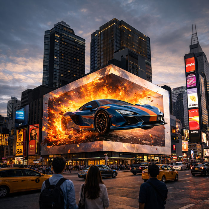 When viewed from the correct angle, content appears to extend beyond the screen, creating dramatic “pop-out” moments that capture attention and drive engagement in high-traffic environments.