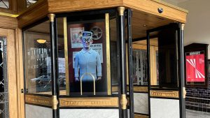 The client shared pictures to help match the uniforms from the 1920’s and selected a Disney-inspired look for the character whose design was a digital reconstruction of the owners grandson. The 3D “transaction experience” begins and virtual money is exchanged for a 3D ticket. Iconic imagery was built into the background of the booth showing movie film reels, posters, and a money box from that era to honor the storied history of the theater.