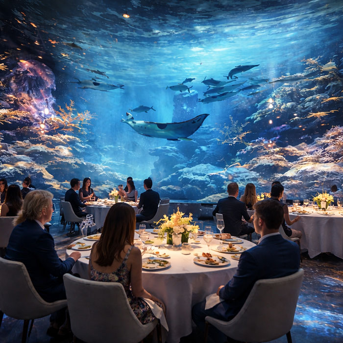 Projection mapping is an immersive display technique that uses precisely calibrated projectors to transform physical surfaces — walls, floors, ceilings, and architectural forms — into dynamic visual canvases.
