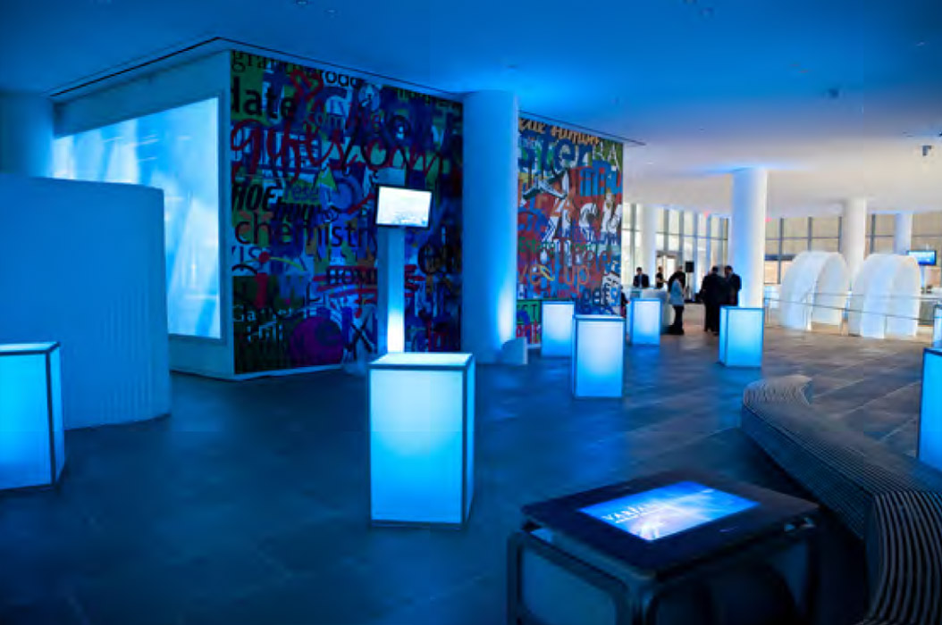 CMS developed two sets of visuals; one was intended to serve as a teaser to guests as they arrived and waited for the presentation on the main video wall, and the other was designed to enhance the reveal of the new product. A series of short messages reinforcing the key value statements about the new product popped out from two 42 inch and two 47-inch Magnetic 3D Allura LCD monitors arranged in the reception area. Zimmerman said the presence of the 3-D monitors and the calculated messages were critical to developing a subliminal reaction with guests that reinforced Varian’s technology leadership.
